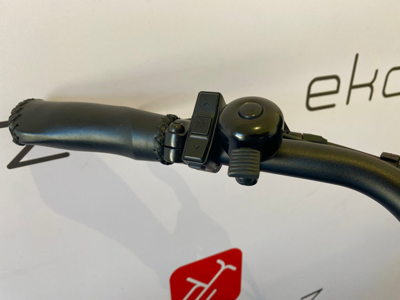 Kožené gripy s područkou. Na levém držadle je dálkové ovládání displeje, na pravém řazení 7 rychlostí (Shimano RDTY300D) s přehazováním palcovou páčkou. Kotoučové hydraulické brzdy Clarks - přední i zadní průměr kotouče 160 mm, dvou-pístkové, páka na dva prsty. Masivní postranní stojan na levé straně.
